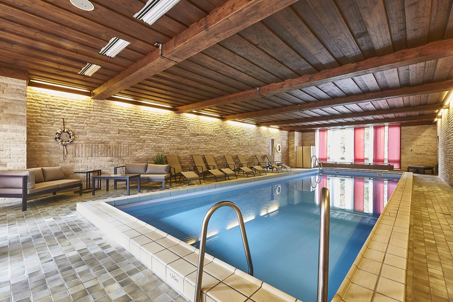 Entspannen Sie sich am Ende eines anstrengenden Tages in unserem hauseigenen Schwimmbad. Mit einer Länge von 12 Metern und einer Breite von 4 Metern müssen Sie bei uns beileibe nicht im Kreis schwimmen. Ziehen Sie ein paar Bahnen und bekommen Sie einen freien Kopf.